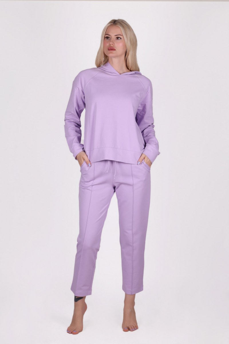 Short-sleeved Hooded Straight Cut Purple Tracksuit