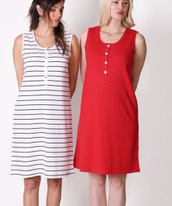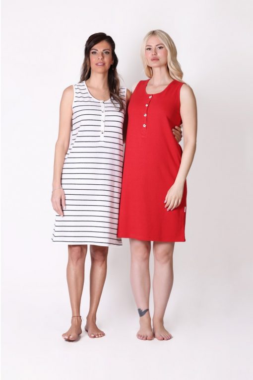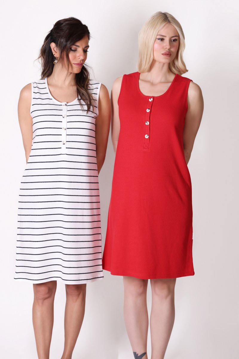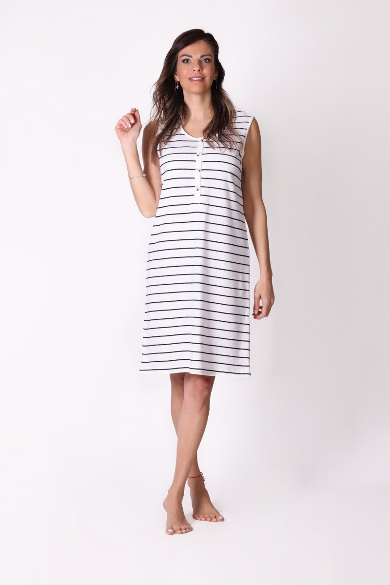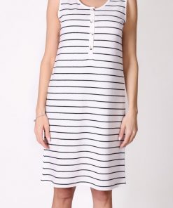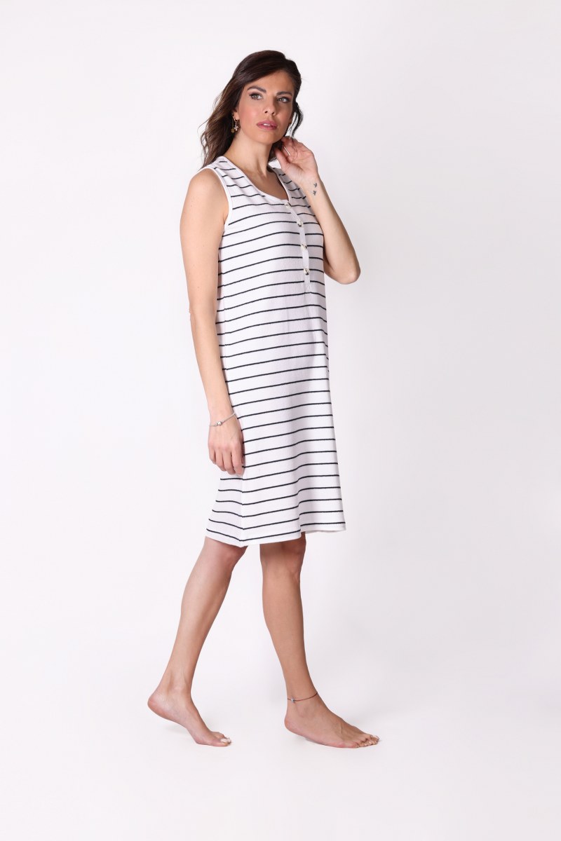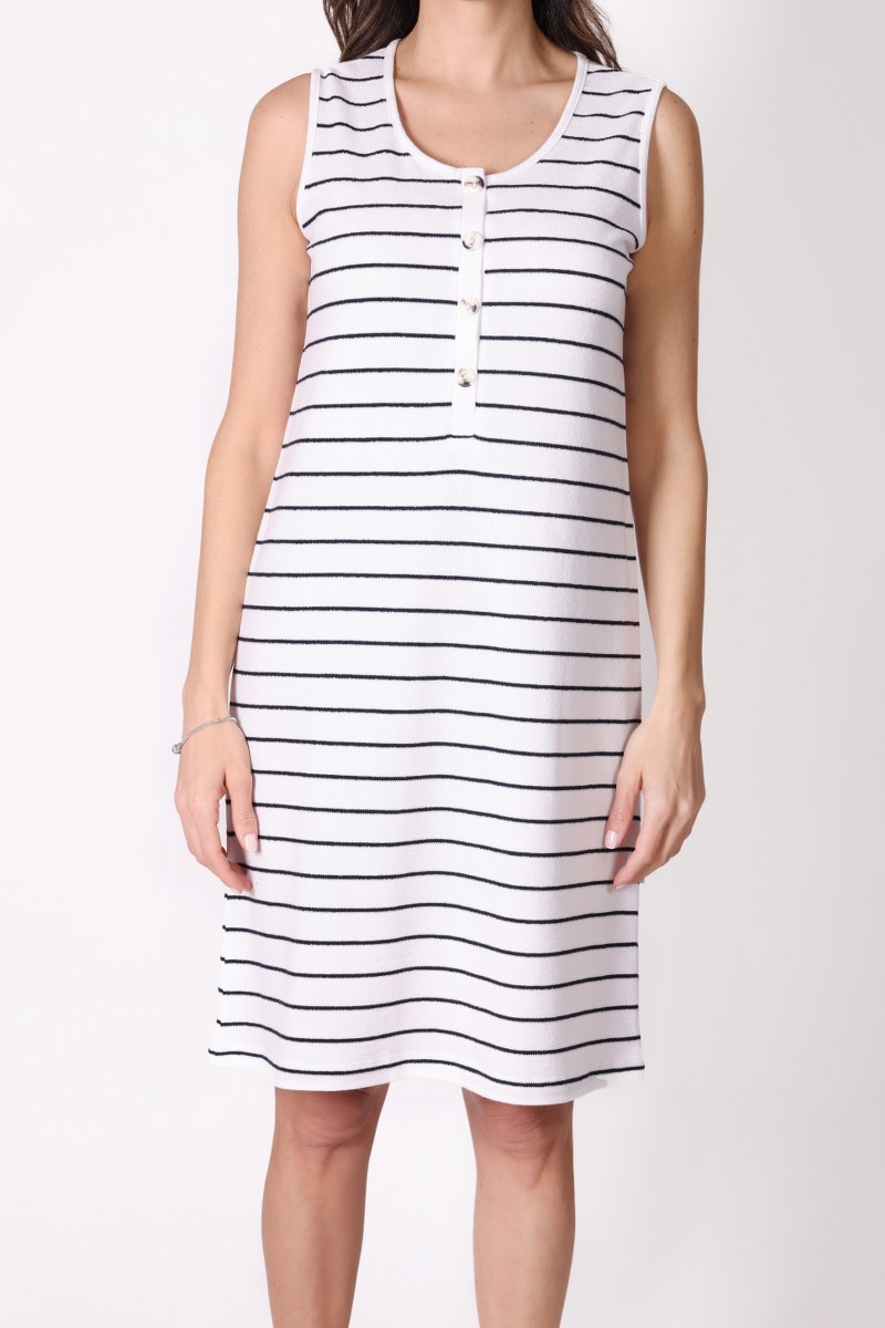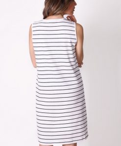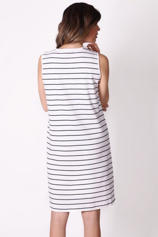 Düğme Detaylı Çizgili Kolsuz Beyaz Elbise