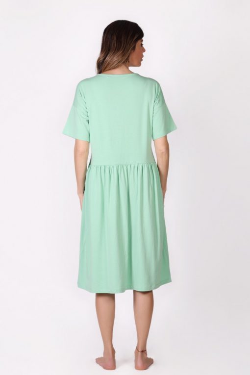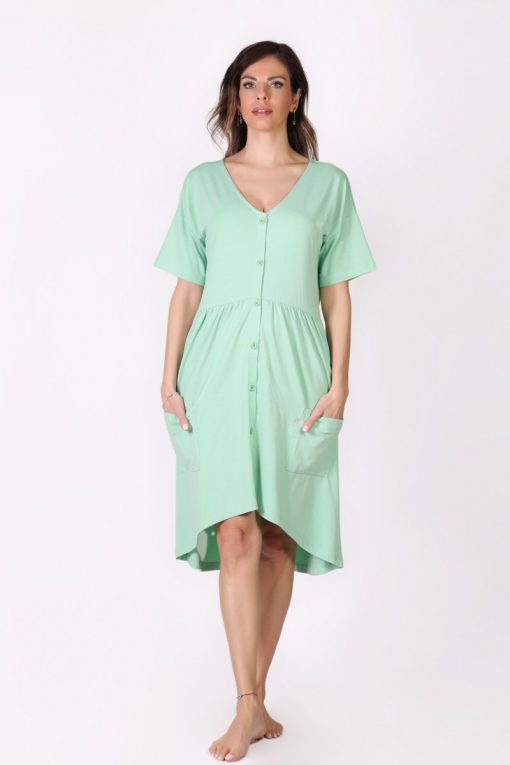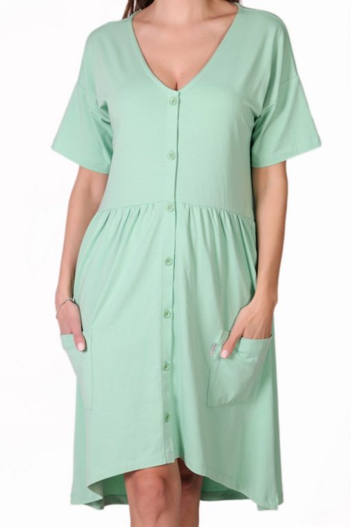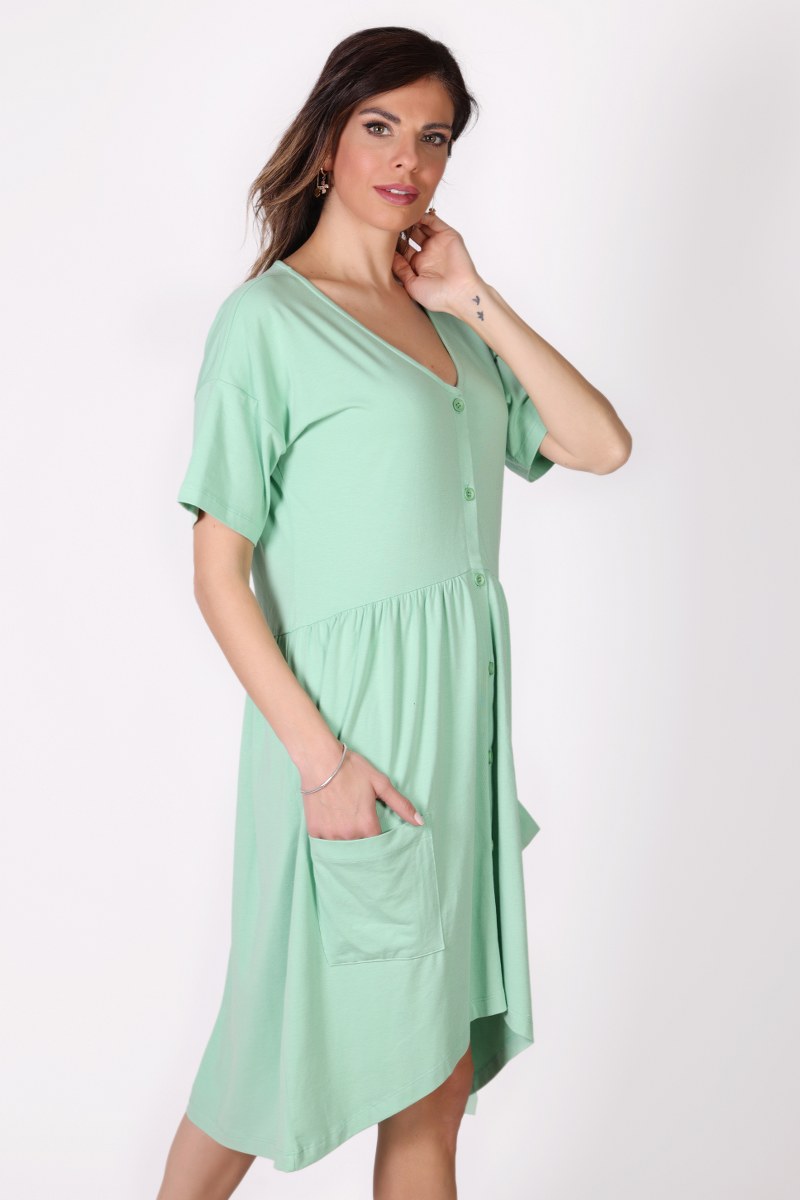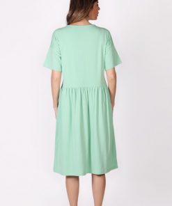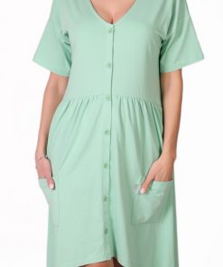 Düğme Detaylı Kısa Kollu Yeşil Elbise