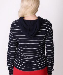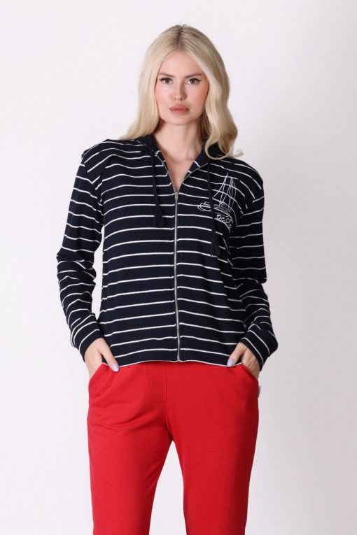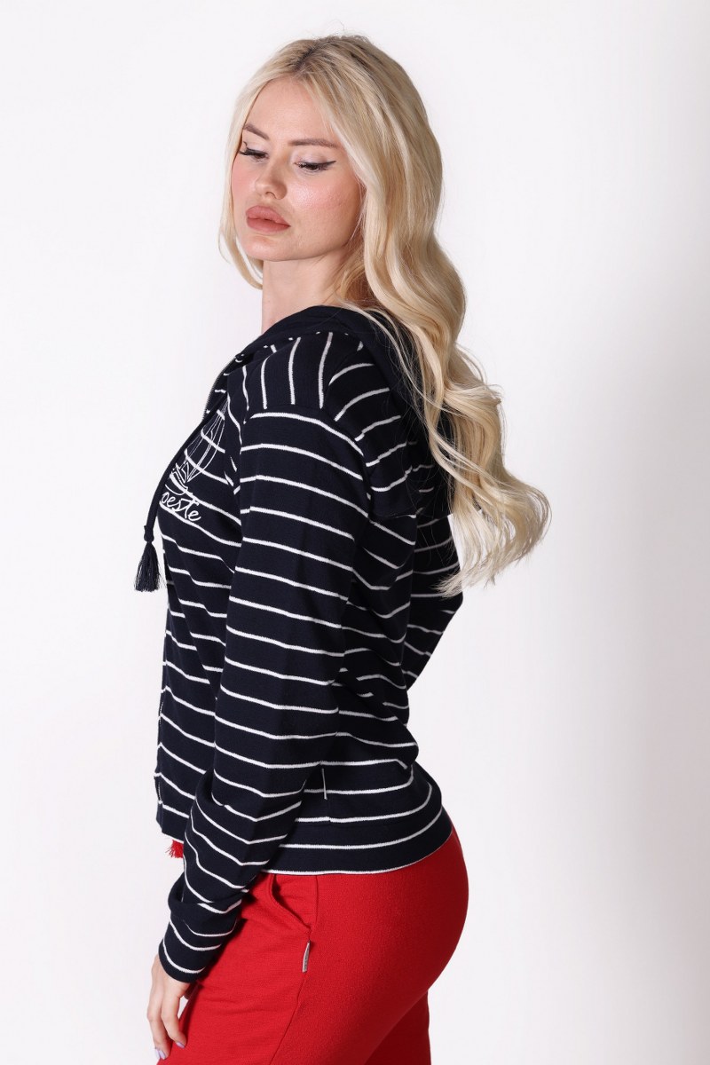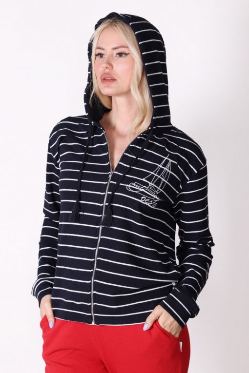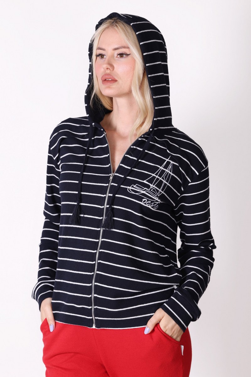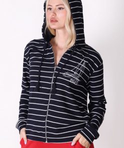 Fermuarlı Çizgili Lacivert Sweatshirt