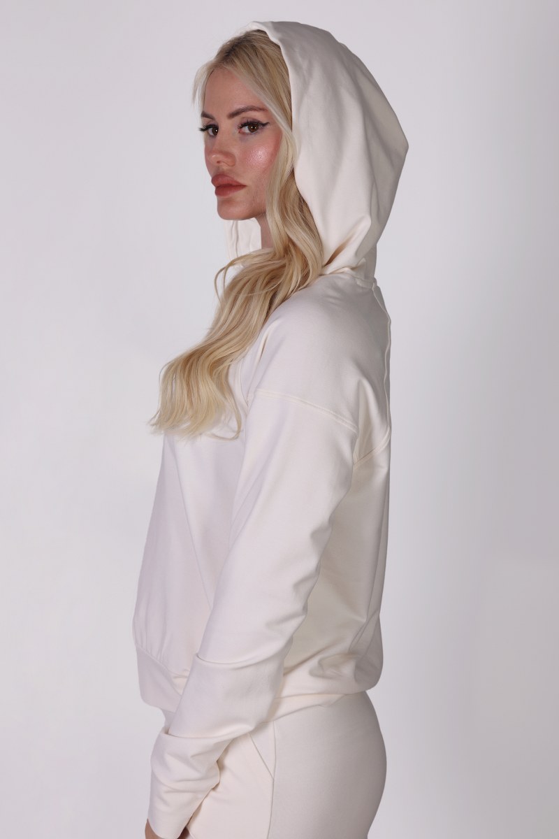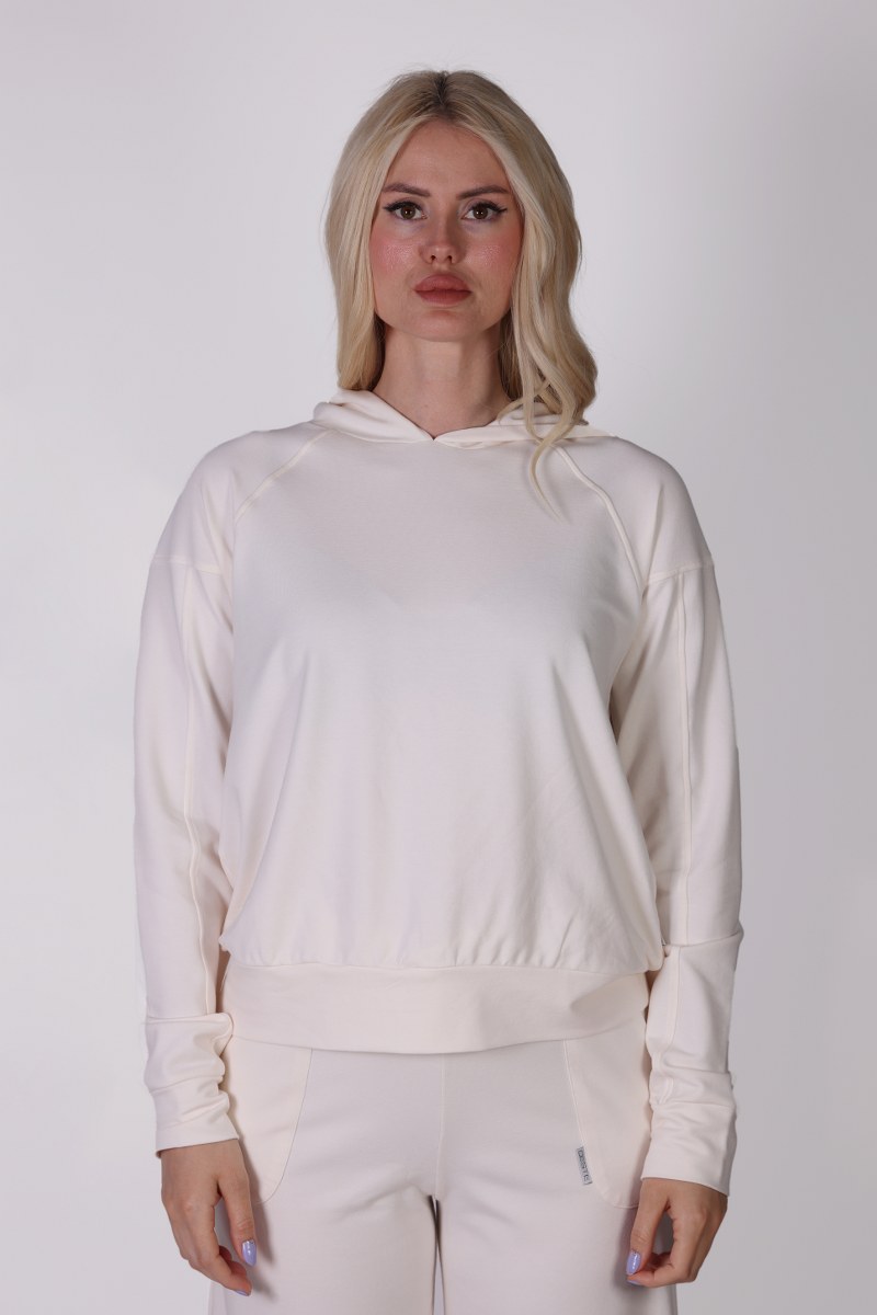 Kapüşonlu Ekru Sweatshirt