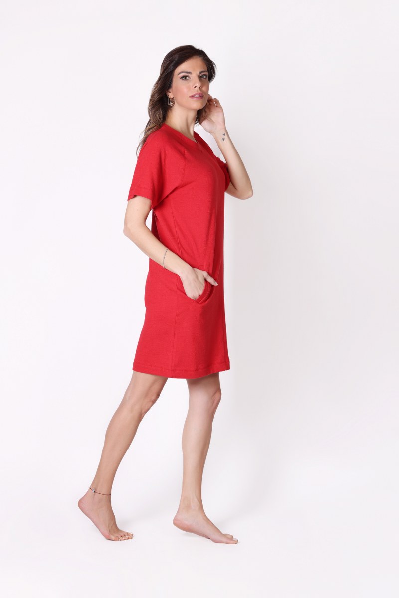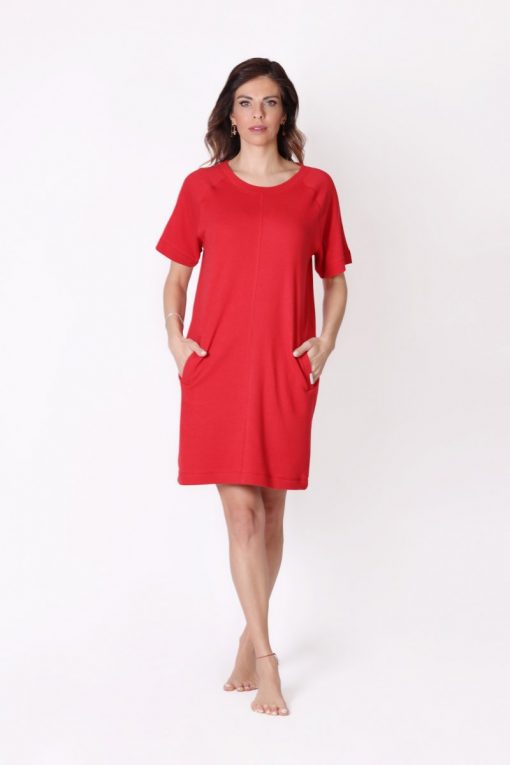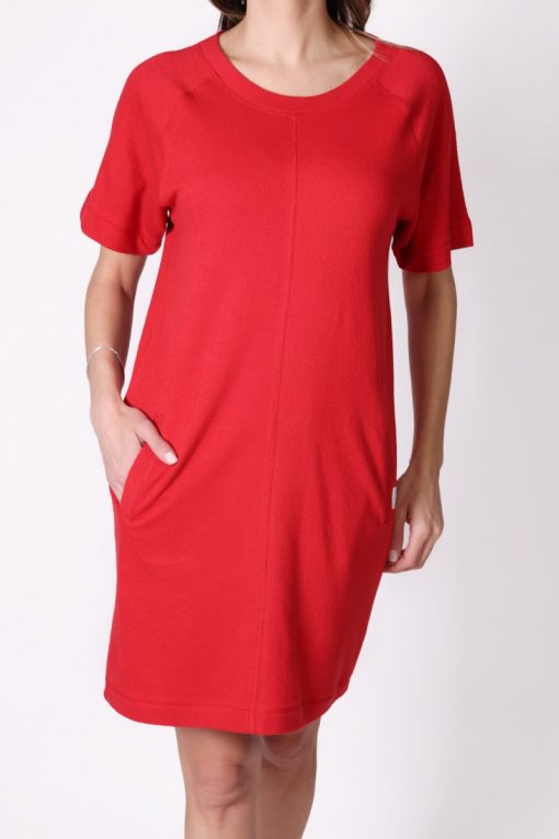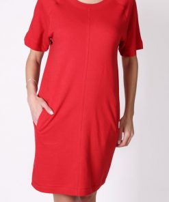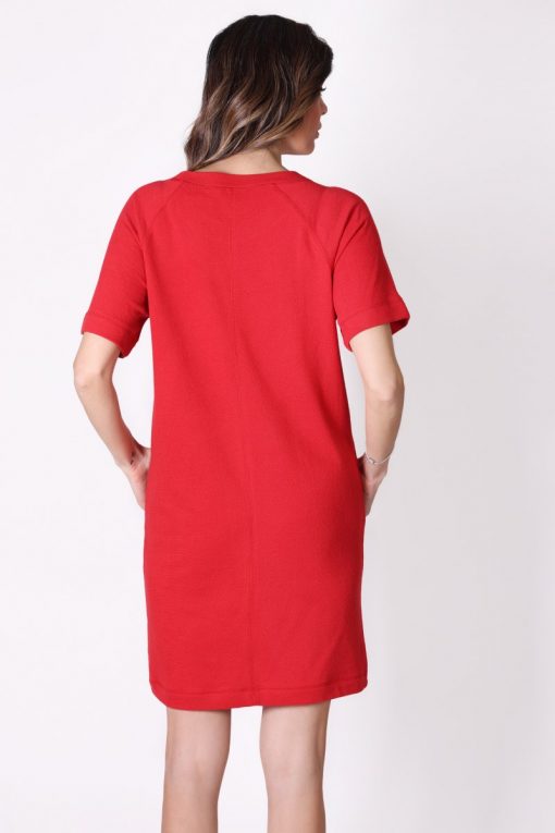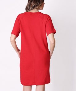 Kısa Kollu Bisiklet Yaka Kırmızı Elbise