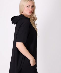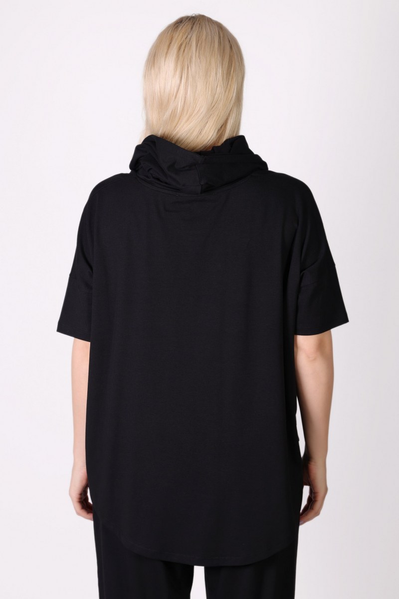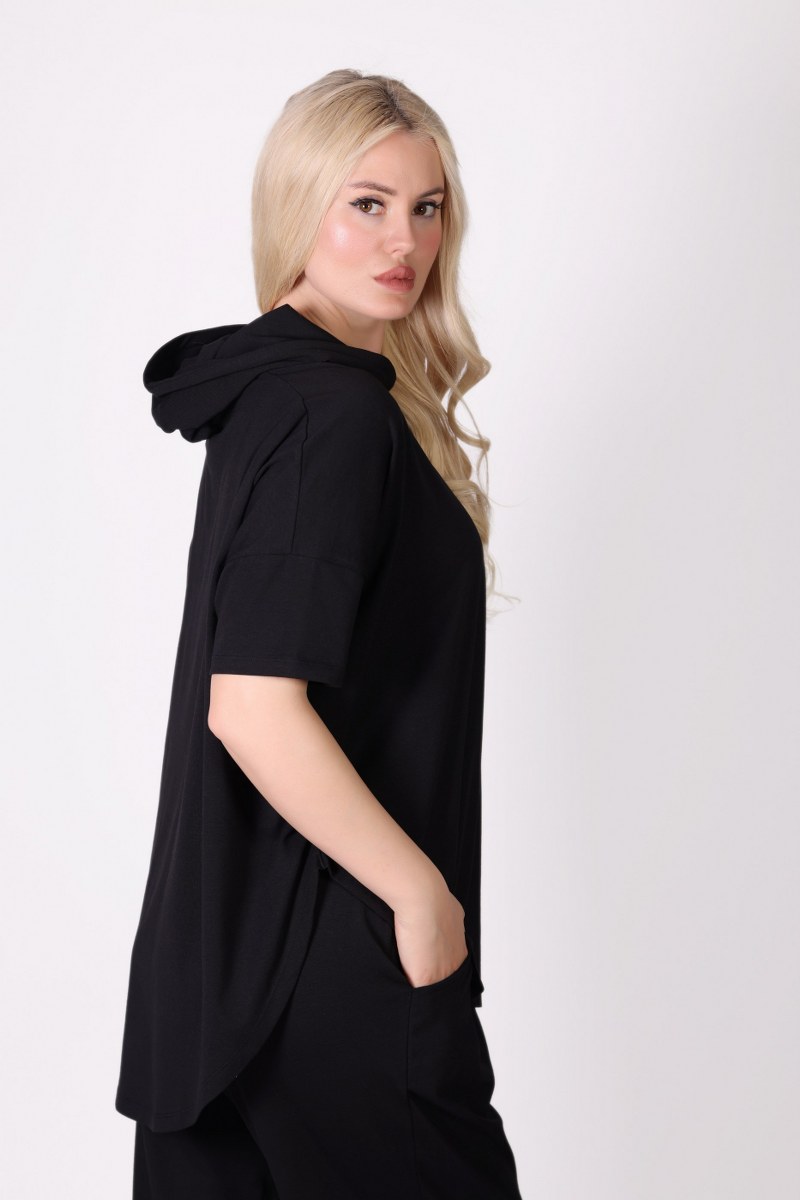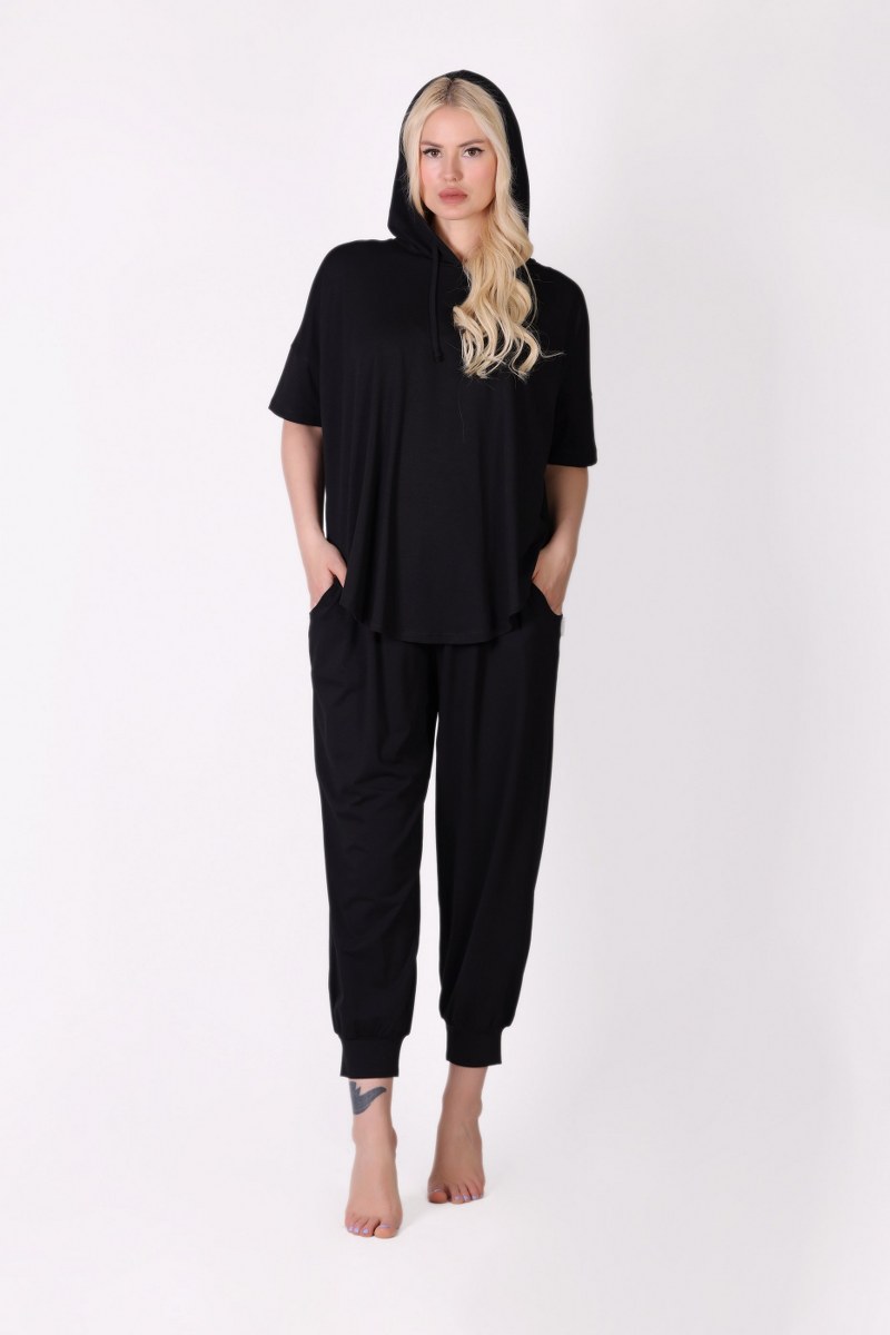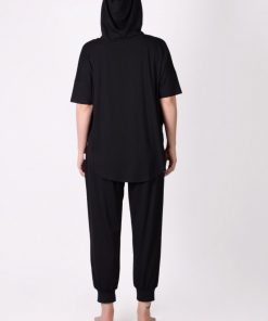 Kısa Kollu Kapüşonlu Havuç Kesim Siyah Eşofman Takımı