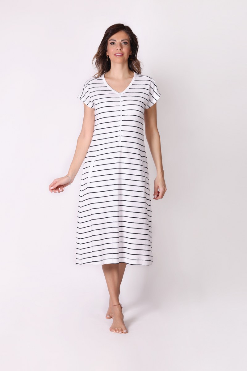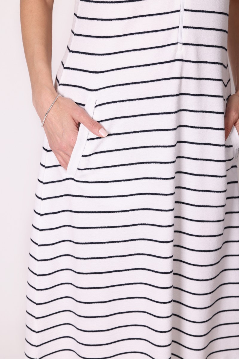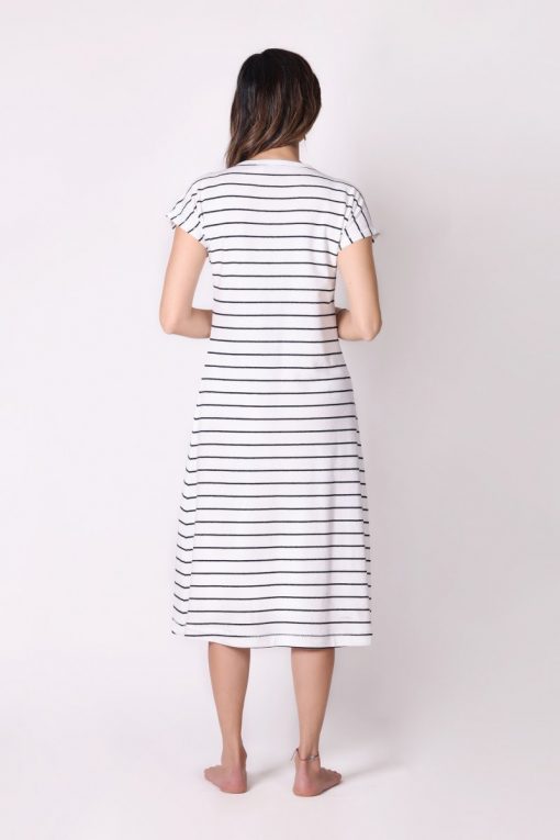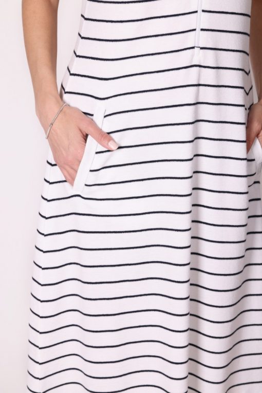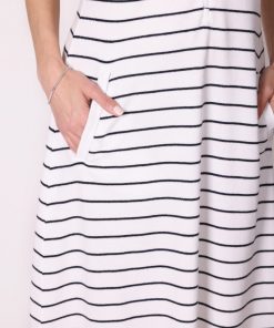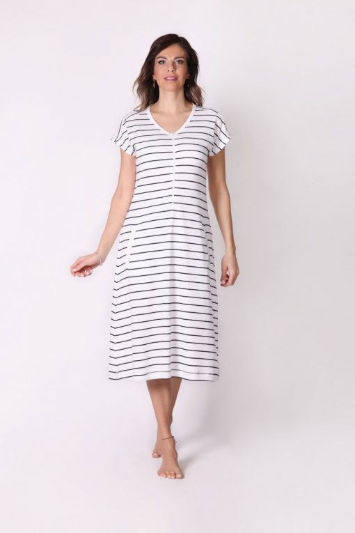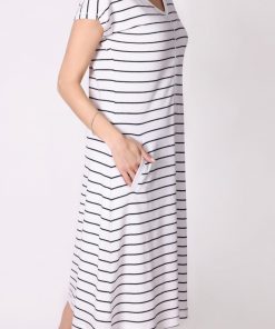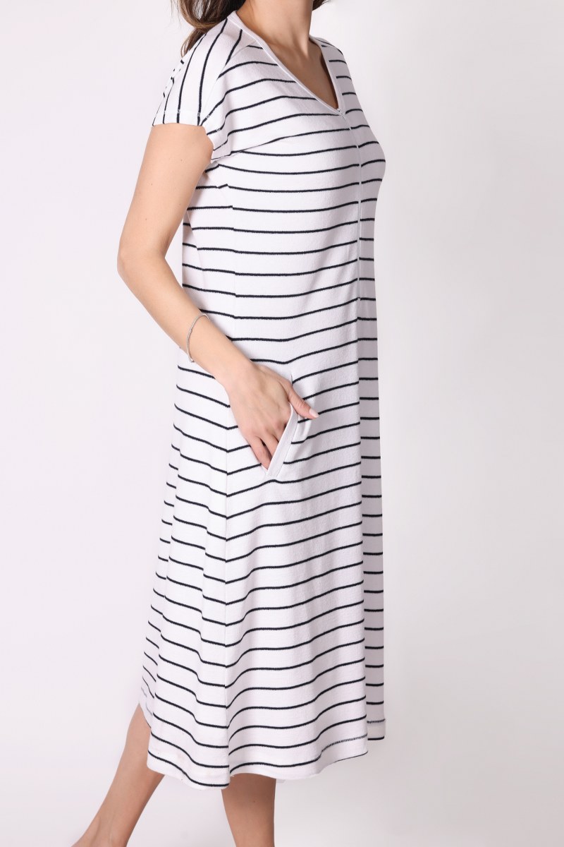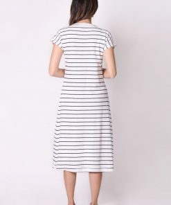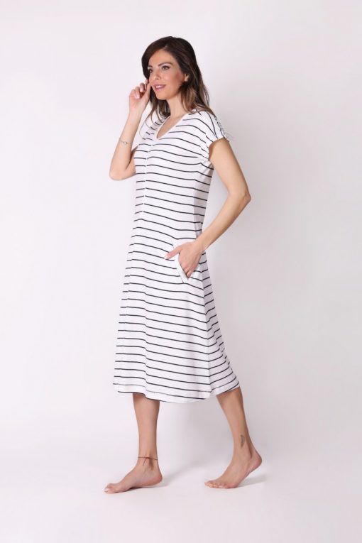 Tags: Beyaz Siyah Çizgili, Elbise, Kısa Kollu, V Yakalı