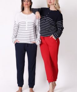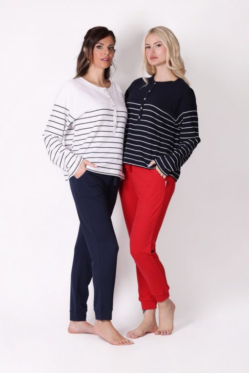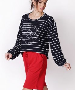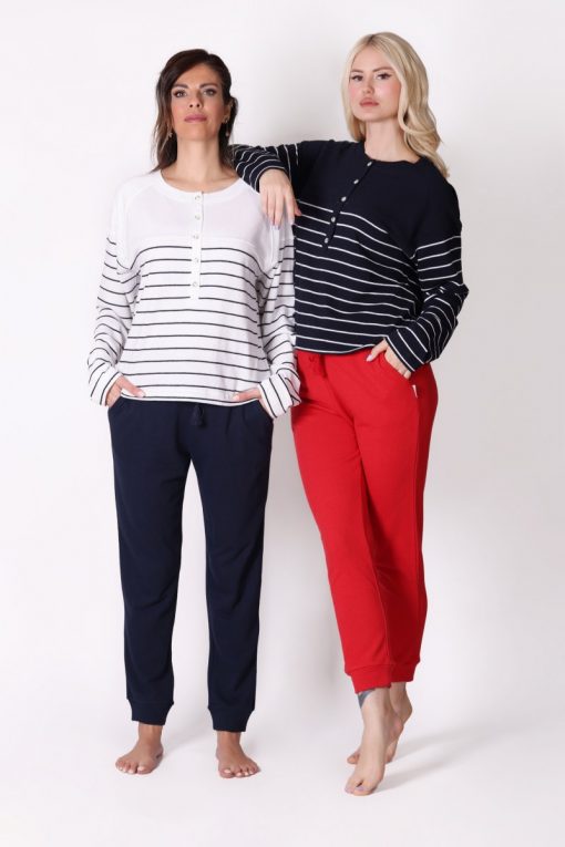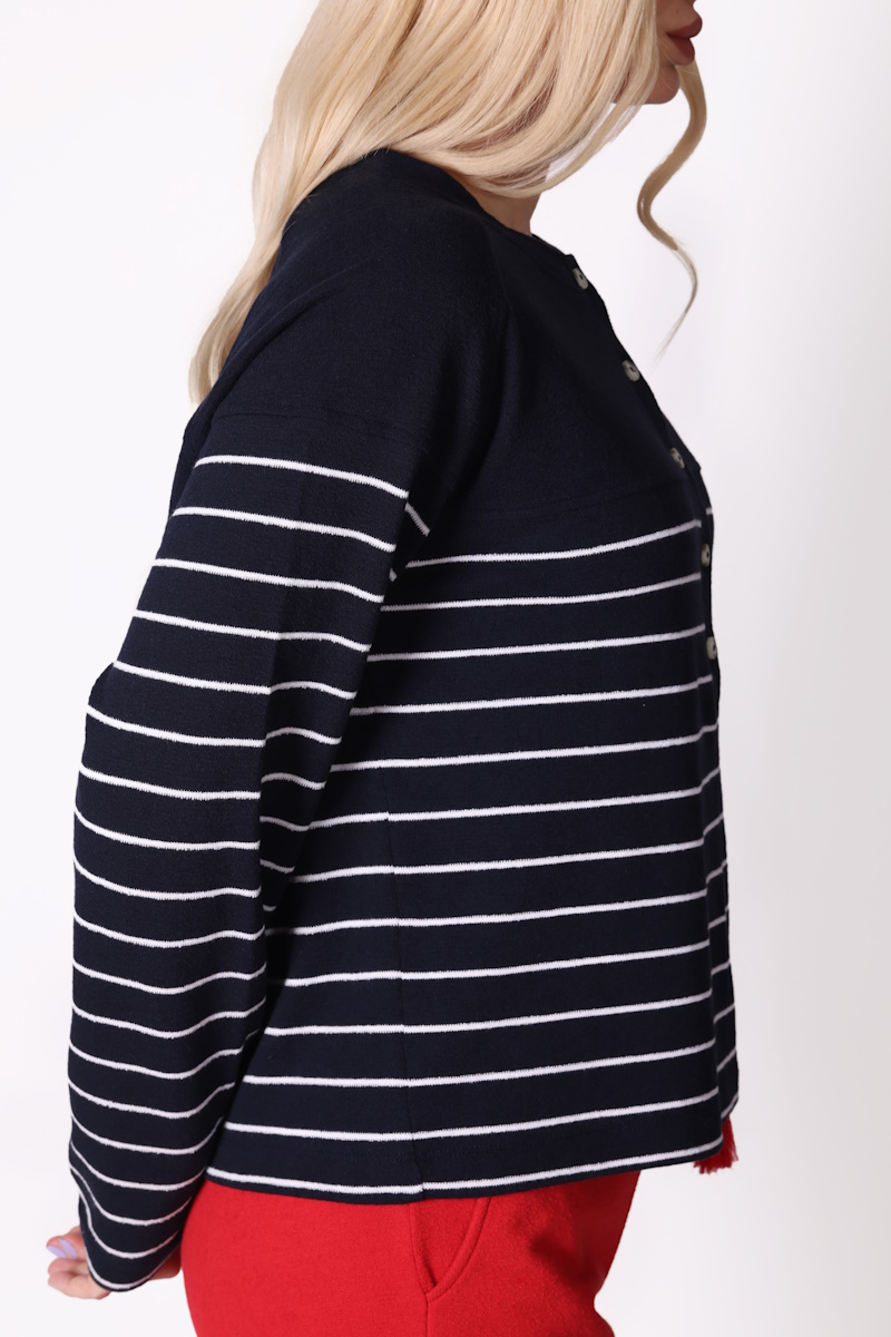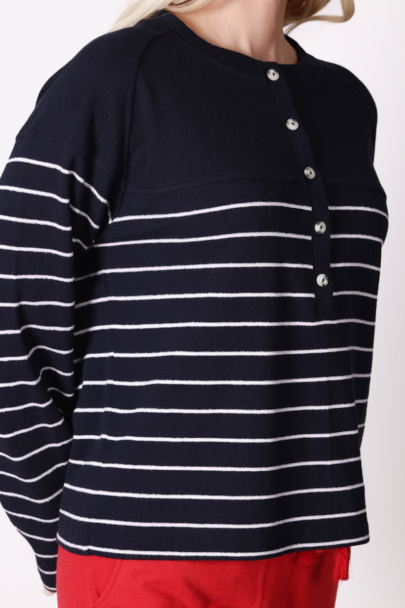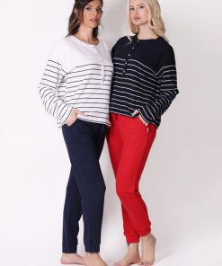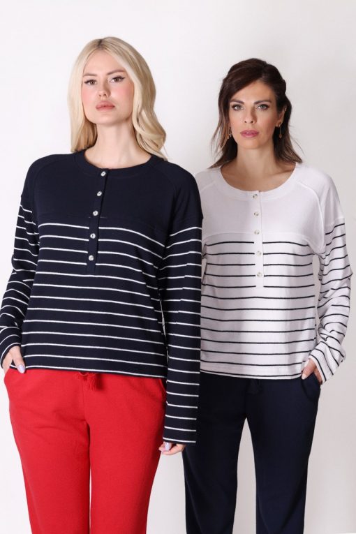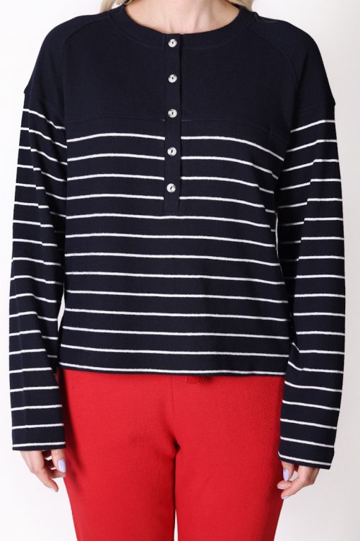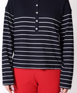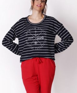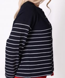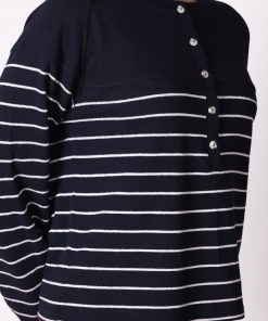 Uzun Kollu Çizgili Lacivert Tişört